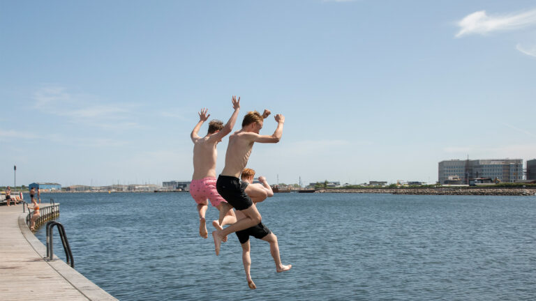 Svøm bare med vennerne, men aldrig sammen med havnebusserne og havnens øvrige trafik